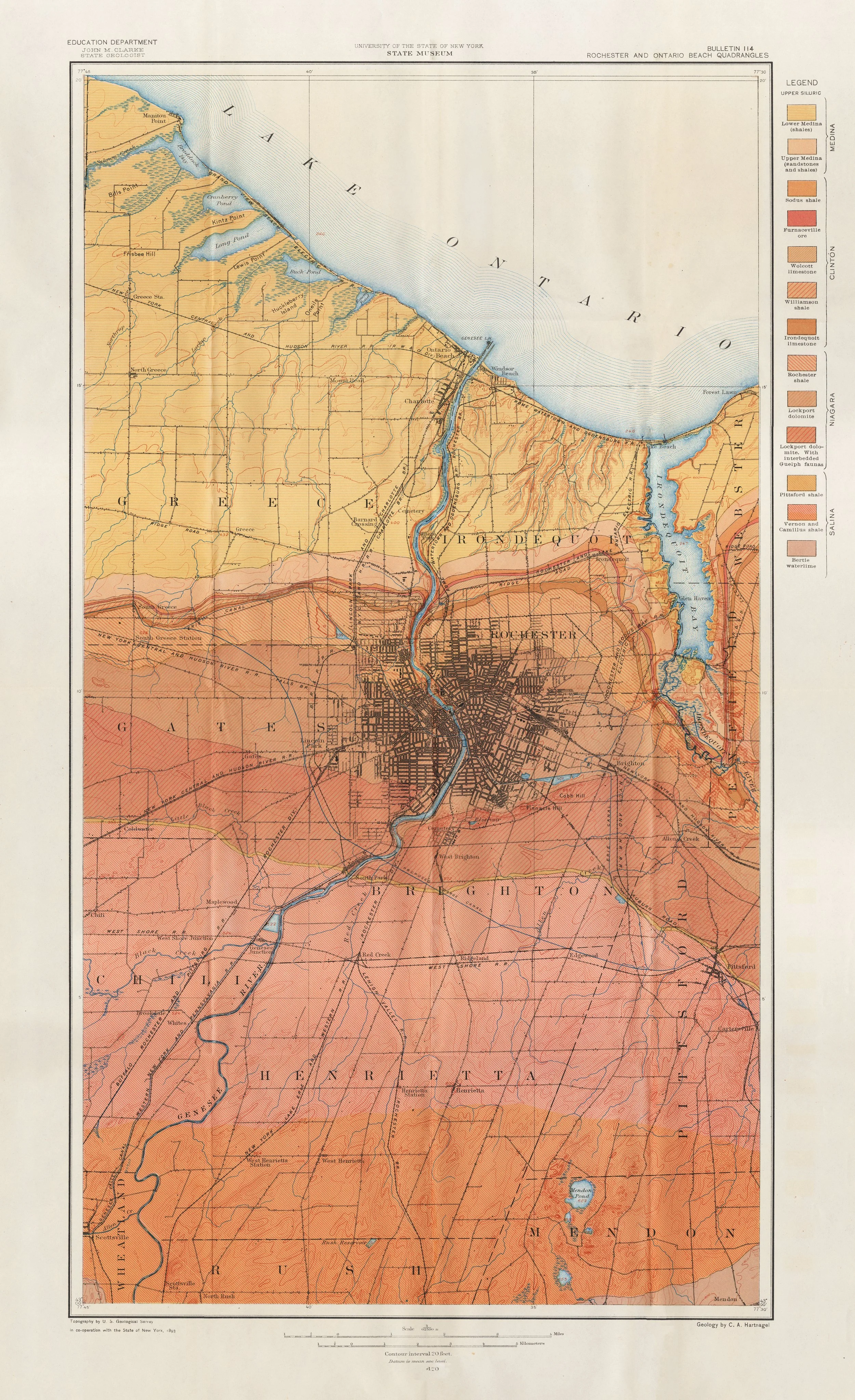 Antique Geological Map of Rochester & Ontario Beach Quadrangles, New York