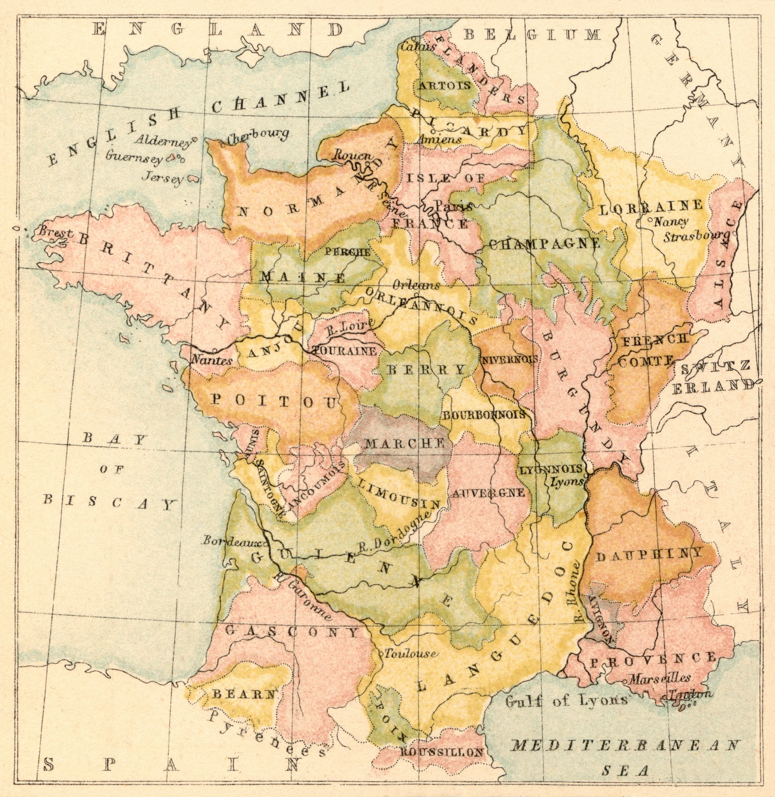 Antique Map of France Historic Provinces Pre-Revolutionary Regions