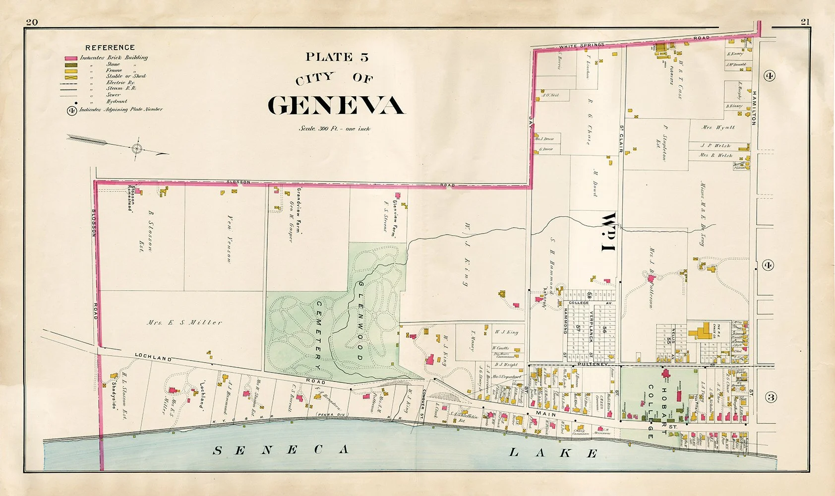 Antique Map of Geneva, New York - Plate 5 with Seneca Lake & Glenwood Cemetery