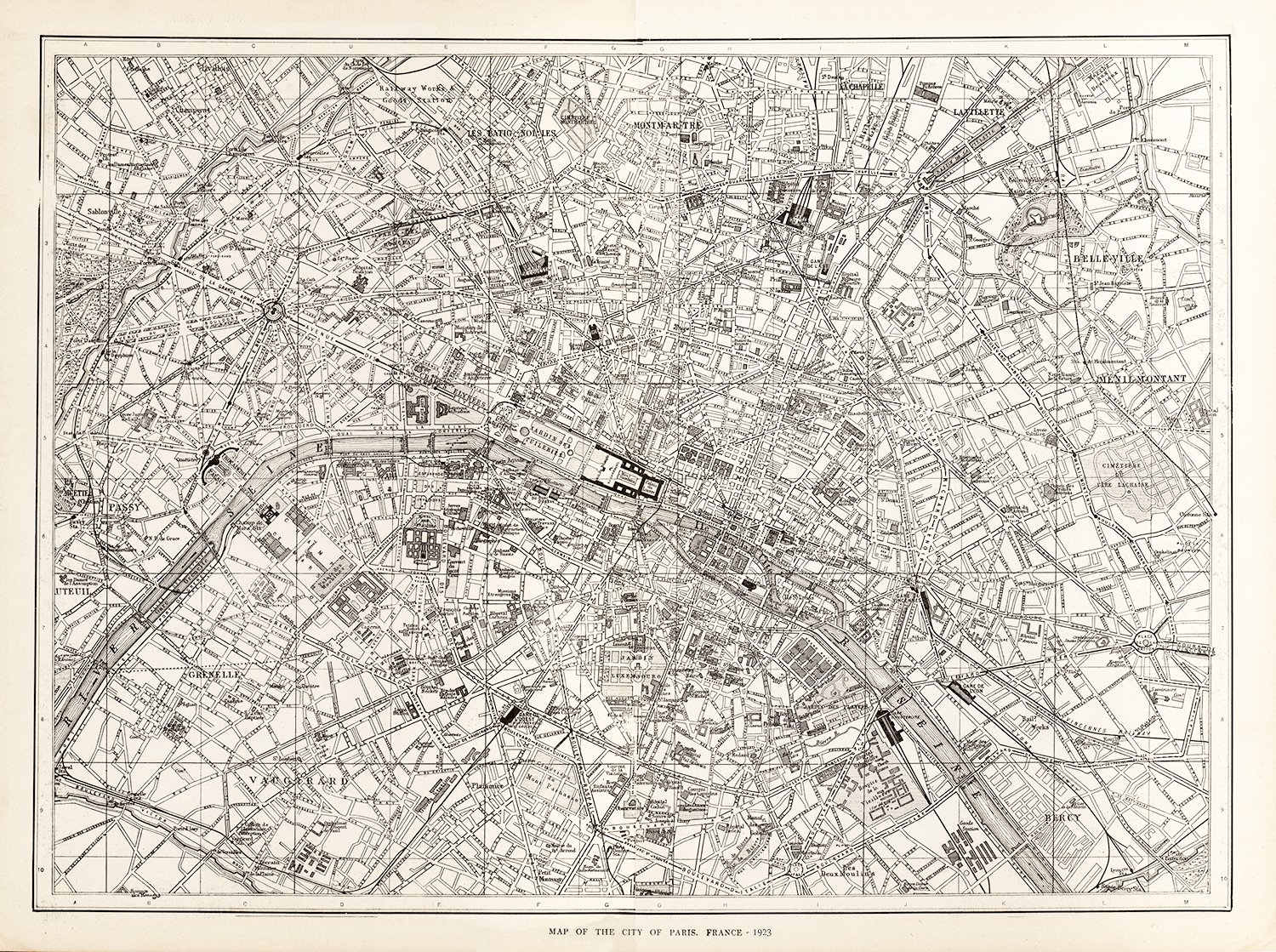 Vintage 1923 Map of Paris, France - Detailed City Street Plan