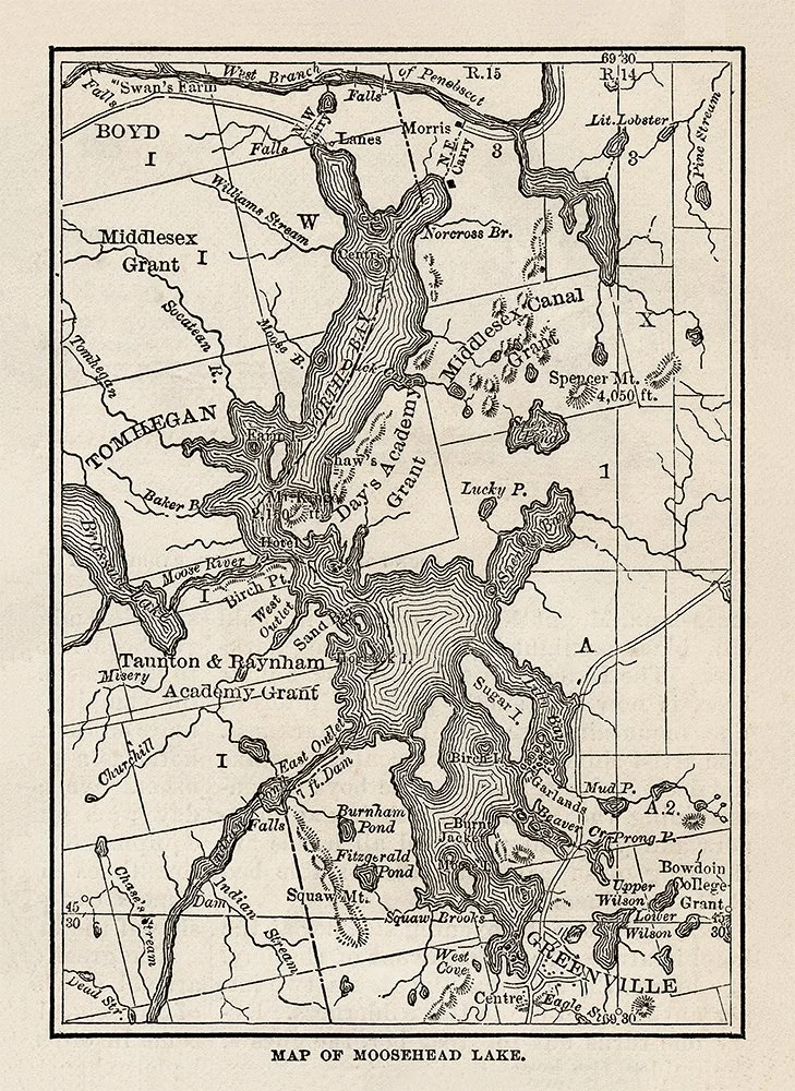 Vintage Map of Moosehead Lake Maine - Antique Cartography Print